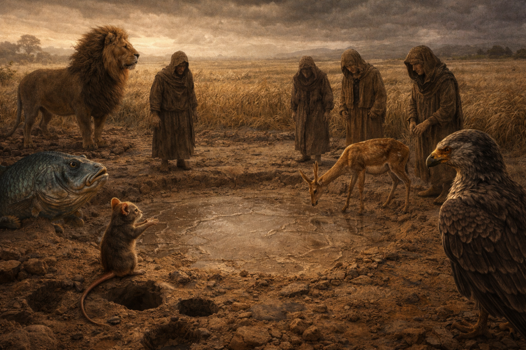 SPÄTER STANDEN mehrere um etwas, das einmal Wasser gewesen war.